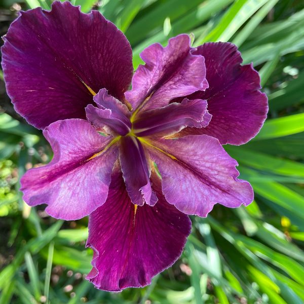 Sdlg. ADG 18-LA-02-03, LA, 44" (112.0 cm), E L. S. light dahlia purple, darker dahlia purple center line; style arms light dahlia purple, darker dahlia purple center line; F. dark dahlia purple, citron green and yellow line signal; beardless. Eyes Wide Open X Seminole Sunrise