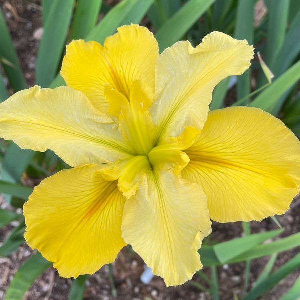 Sdlg. ADG 16-19-04, LA, 42" (106.5 cm), E-L. S. light lemon yellow, light citron green inner line; style arms light citron yellow; F. dark sulphur lemon-yellow, carrot gold line signal; beardless; slight musky fragrance. Atchafalaya X Seminole Autumn.